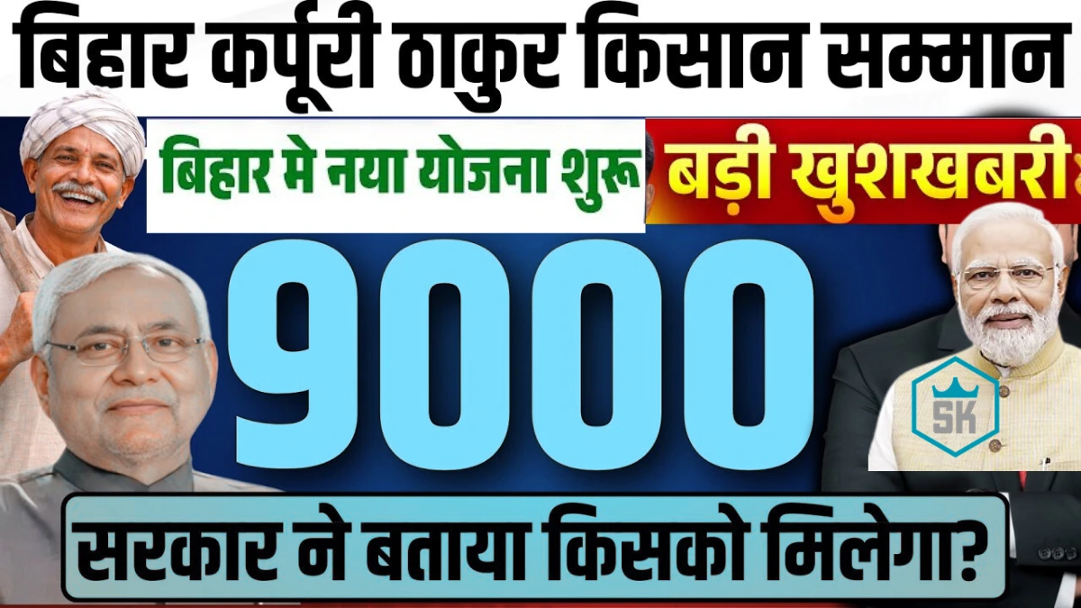 बिहार सरकार ने राज्य के छोटे और सीमांत किसानों को आर्थिक मजबूती देने के उद्देश्य से जननायक कर्पूरी ठाकुर किसान सम्मान निधि योजना शुरू की है। इस योजना के तहत पात्र किसानों को खेती से जुड़े खर्चों के लिए हर साल ₹9,000 की आर्थिक सहायता दी जाती है। सरकार इस राशि को सीधे लाभार्थी के बैंक खाते में भेजती है, ताकि किसान बीज, खाद, सिंचाई और अन्य कृषि जरूरतों को समय पर पूरा कर सकें।