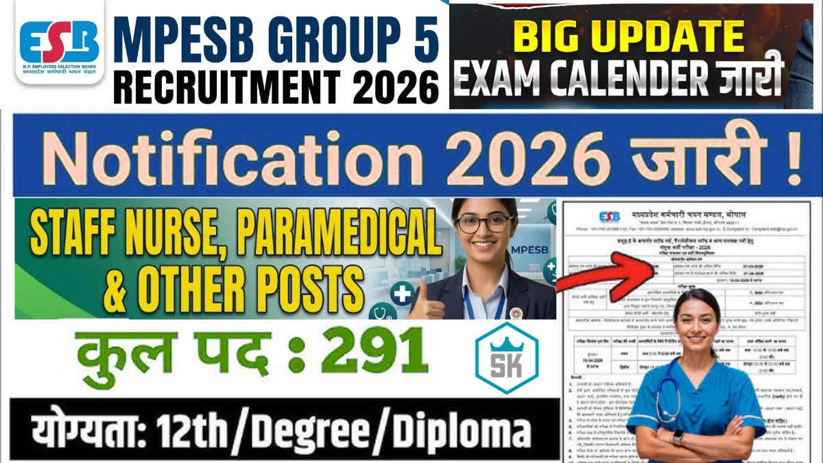 मध्य प्रदेश में सरकारी नौकरी की प्रतीक्षा कर रहे युवाओं के लिए एक सुनहरा अवसर सामने है। मध्य प्रदेश कर्मचारी चयन मंडल (MPESB) ने ग्रुप 5 के अंतर्गत विभिन्न पदों पर भर्ती के लिए अधिसूचना जारी कर दी है। इस भर्ती अभियान के तहत कुल 291 रिक्त पदों पर योग्य उम्मीदवारों की नियुक्ति की जाएगी। इच्छुक उम्मीदवार आधिकारिक वेबसाइट esb.mp.gov.in पर जाकर ऑनलाइन आवेदन कर सकते हैं।